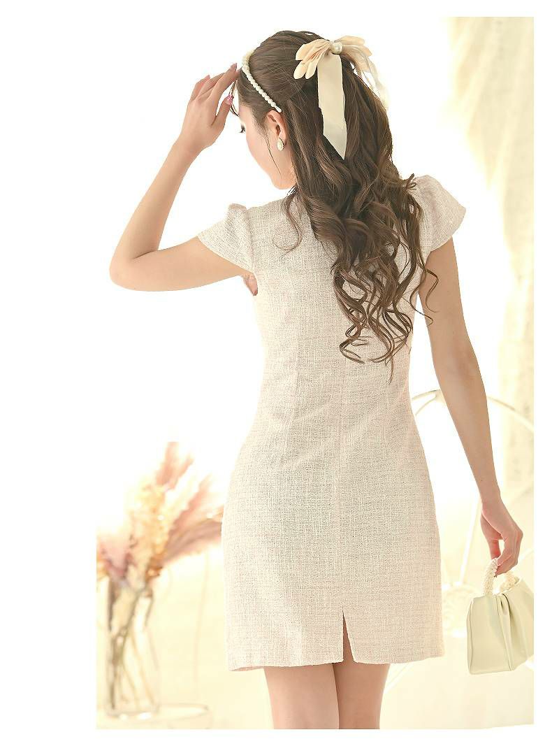 【訳ありアウトレット】可愛い襟付き袖付きツイードキャバワンピース【Ryuyu】