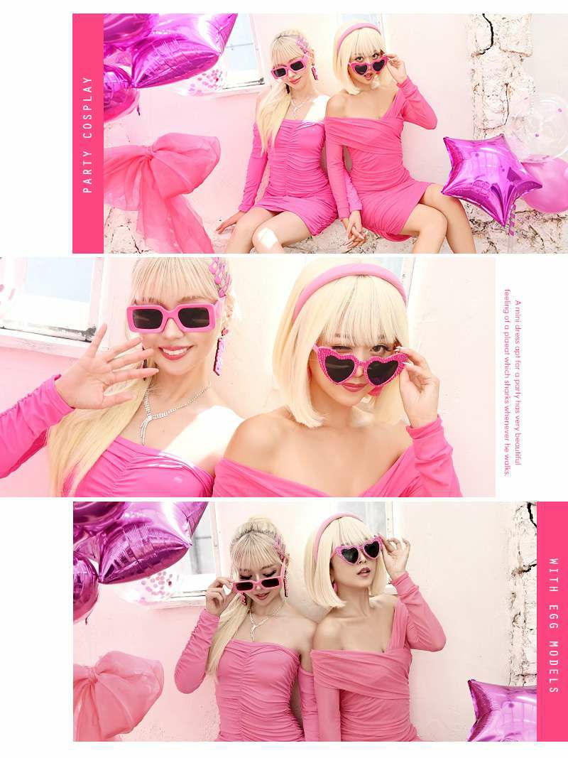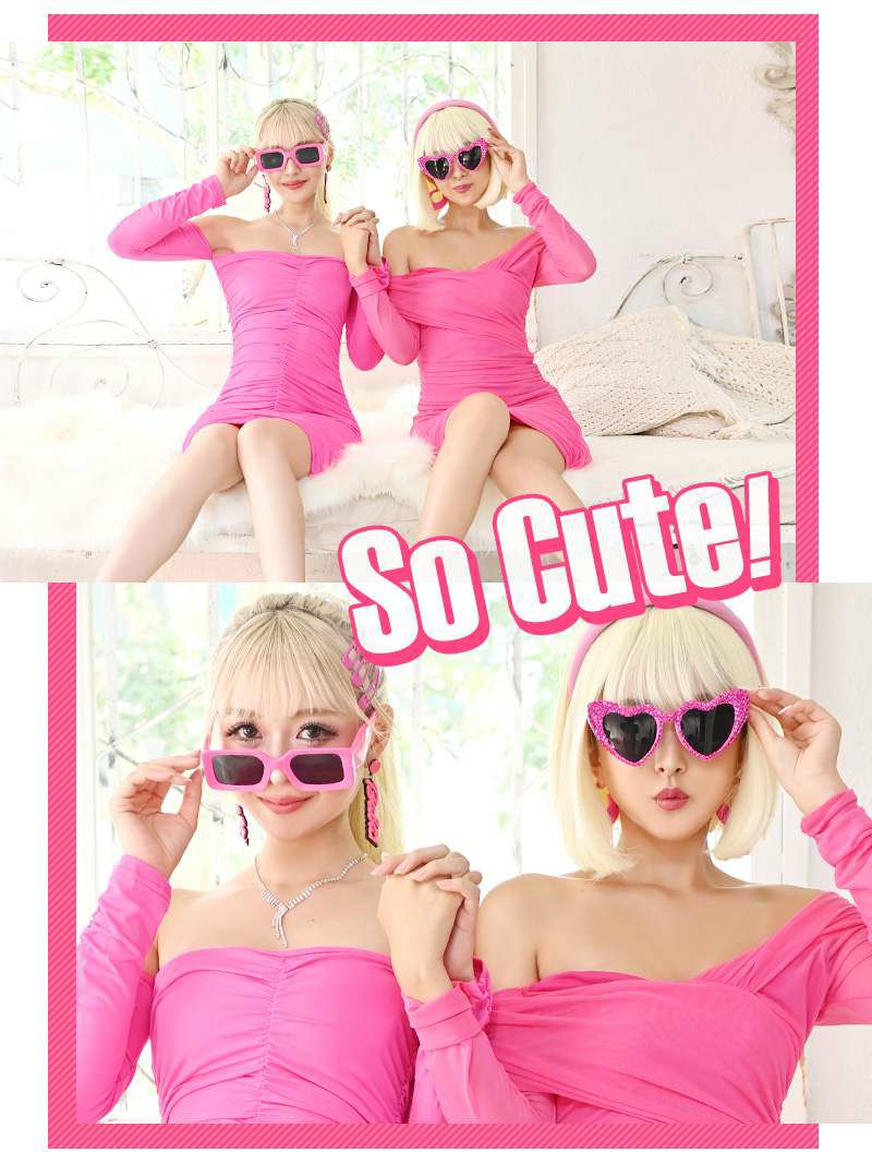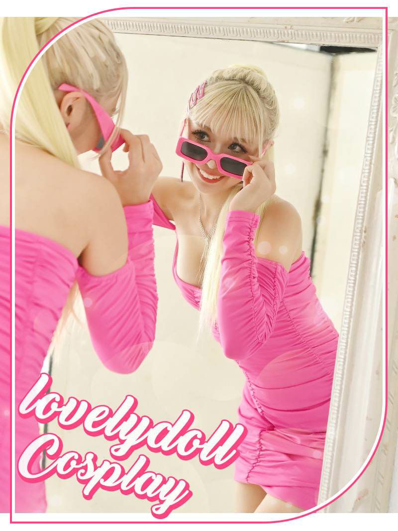 ピンクの可愛い色合いが目を引き、バービー風のガーリーな雰囲気を演出。