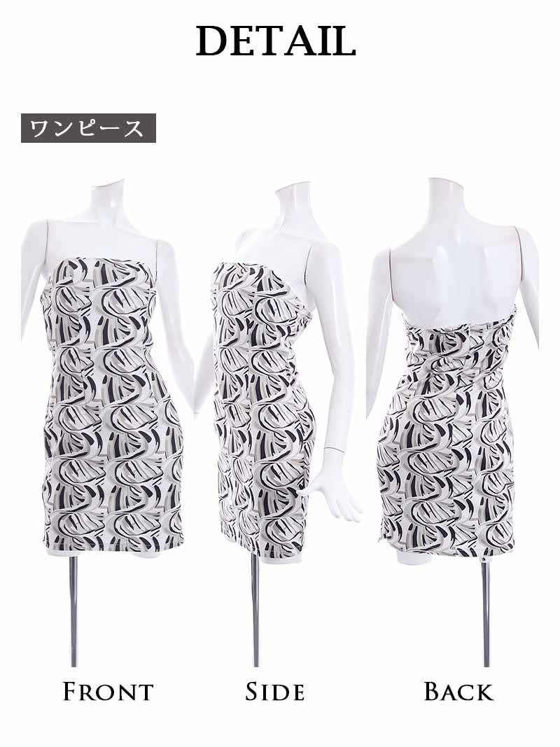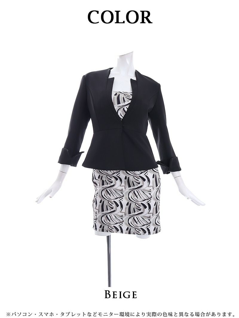 4. 【訳ありアウトレット】デザインプリントタイトミニ丈ワンピースキャバスーツ【Ryuyu】(S/M/L/XL)(ベージュ)