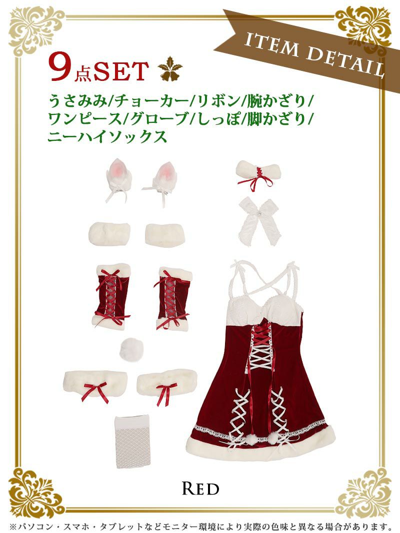 うさ耳サンタで視線を集める サンタコスプレ バニーガールエロかわサンタコスプレ9点セット あいさ あいみん 着用 サンタコスプレ【Ryuyu】(フリーサイズ)(レッド/ピンク/ホワイト)