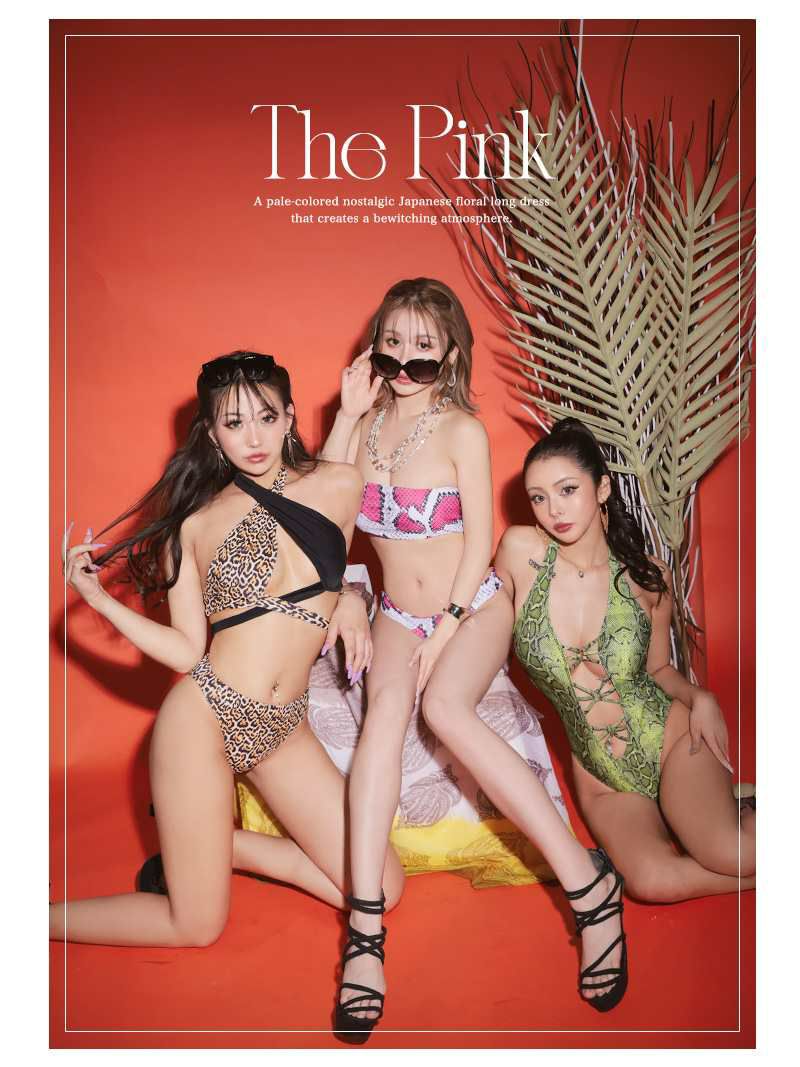 派手バンドゥビキニでインスタ映え◎ 水着 パイソン柄ピンクバンドゥ水着 アニマルデザインレディース水着【Ryuyu】(M/L)(ピンク)