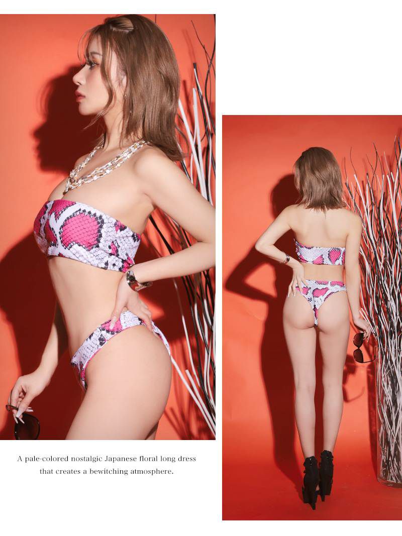 パイソン柄ピンクバンドゥ水着  アニマルデザインレディース水着【Ryuyu】