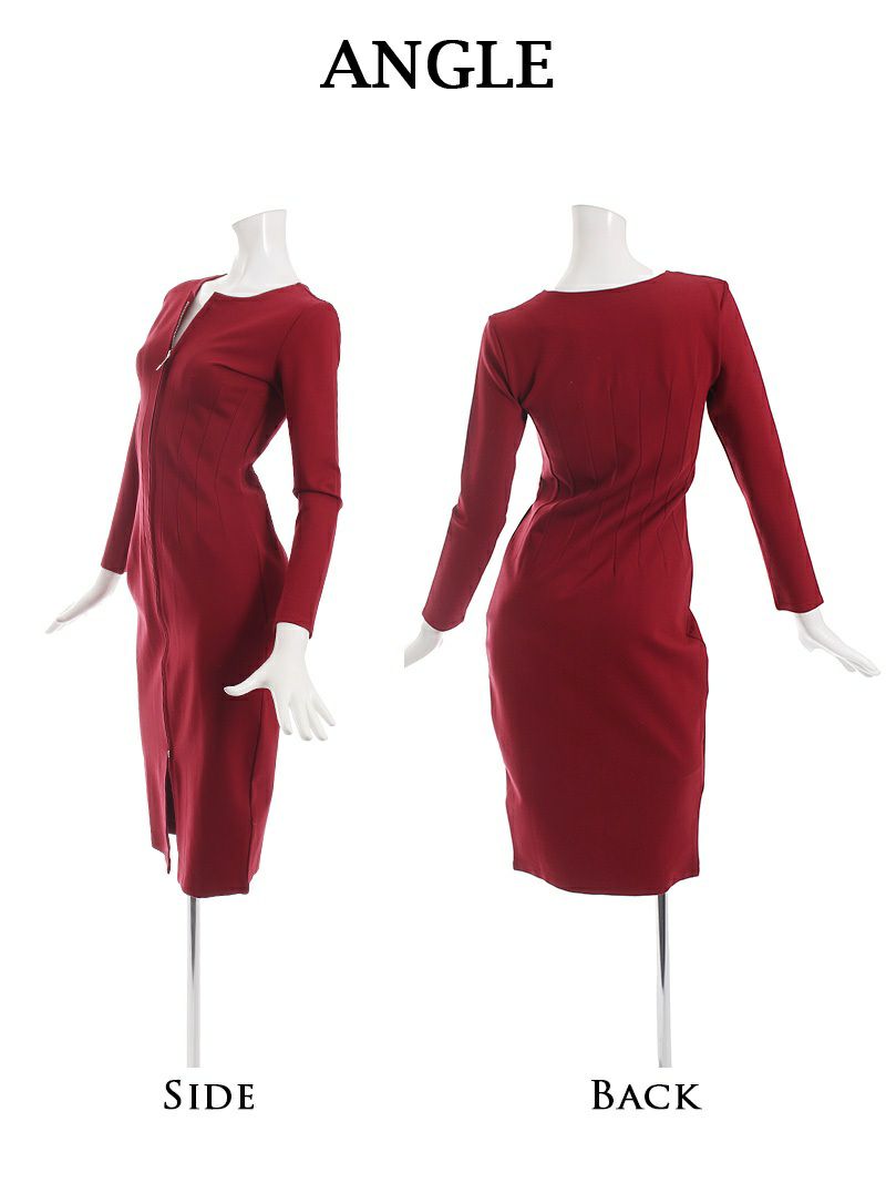 lady度高めに着こなせる韓国ワンピース 膝丈フロントジップ長袖キャバワンピース KANO 着用 韓国ワンピース【DAYS PIECE】(S/M/L)(ワイン)