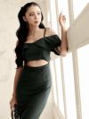 オフショルへそ出し膝丈ワンピース KANO 着用キャバワンピ【DAYS PIECE】