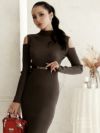 リブニット膝丈タイトキャバワンピース KANO 着用 韓国ワンピース【DaysPiece】