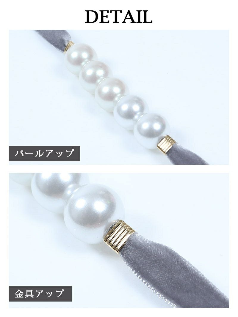 5. ホワイトパールベロア飾り帯紐【Ryuyu】(フリーサイズ)(ピンク/グレー/ワイン/クリーム/ターコイズ/ベージュ/ブラック)