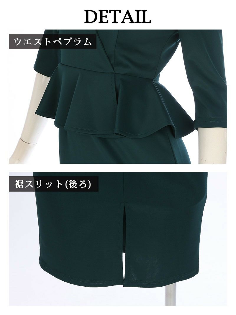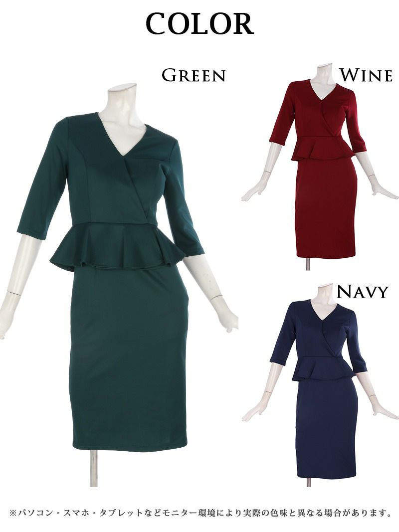 新色ネイビー追加!上質素材でワンランク上のキャバ嬢へ ペプラムデザイン袖付き色っぽ韓国ワンピース KANO 着用 韓国ドレス【DAYS PIECE】(S/M/L/XL)(ワイン/グリーン/ネイビー)