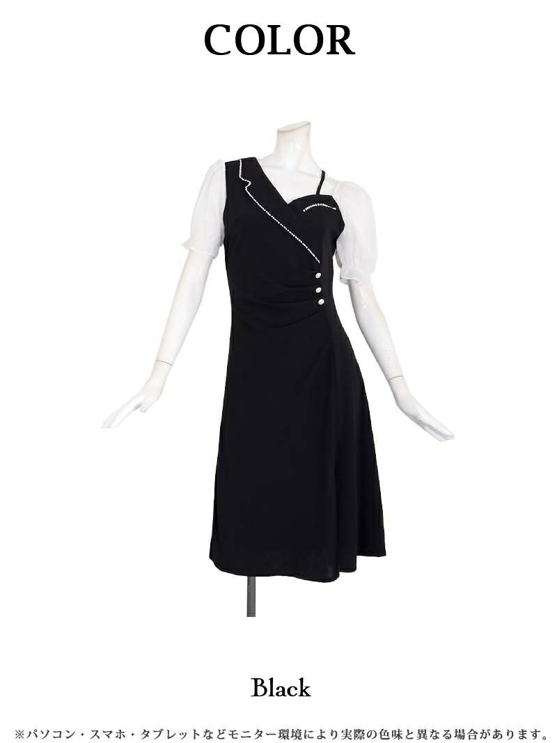 体型カバーもできる最強韓国風ワンピ登場! アシンメトリー膝丈バイカラー韓国風ワンピース KANO 着用 ラウンジワンピース【DAYS PIECE】(S/M/L/XL(2L))(ブラック)