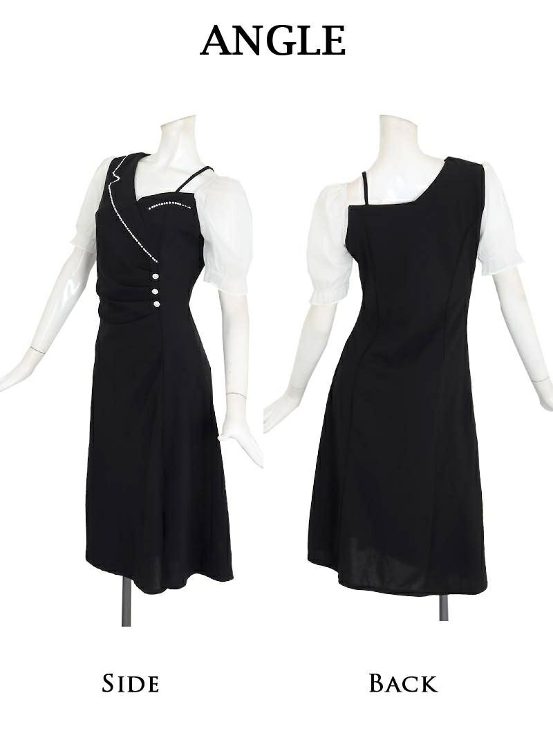 4. アシンメトリー膝丈バイカラー韓国風ワンピース KANO 着用 ラウンジワンピース【DAYS PIECE】(S/M/L/XL(2L))(ブラック)