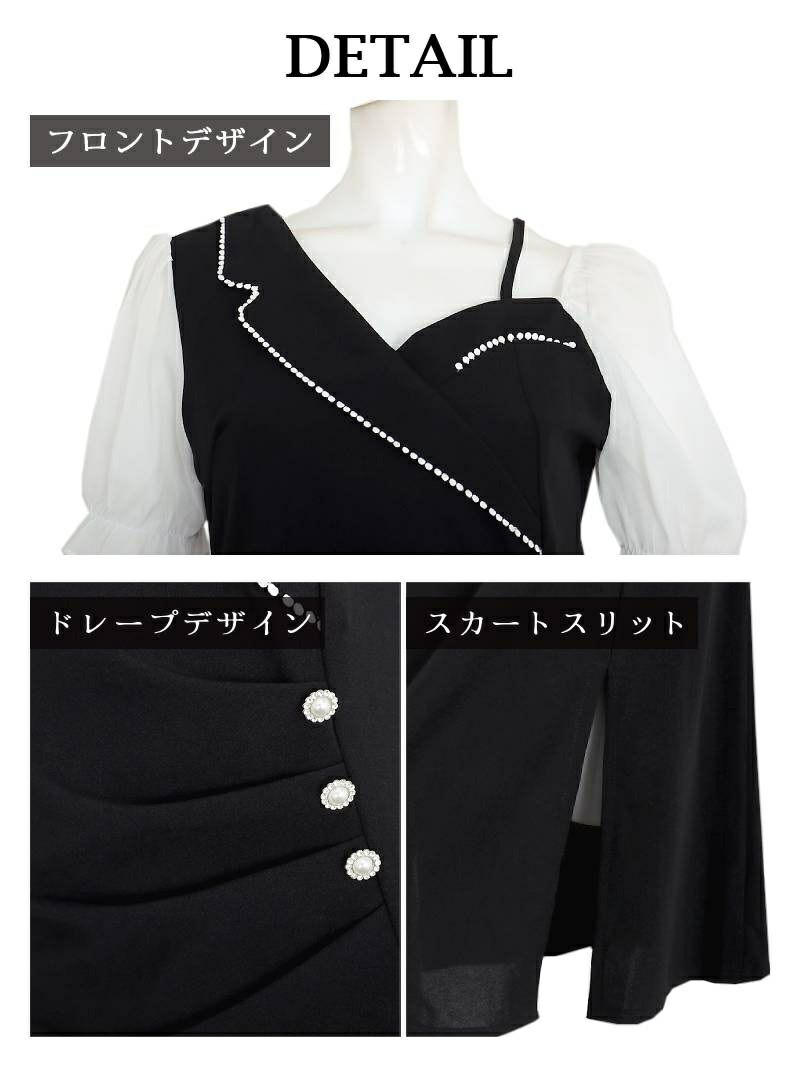 膝丈ドレスですがスリットがあしらわれているので窮屈感なく着こなせます。
