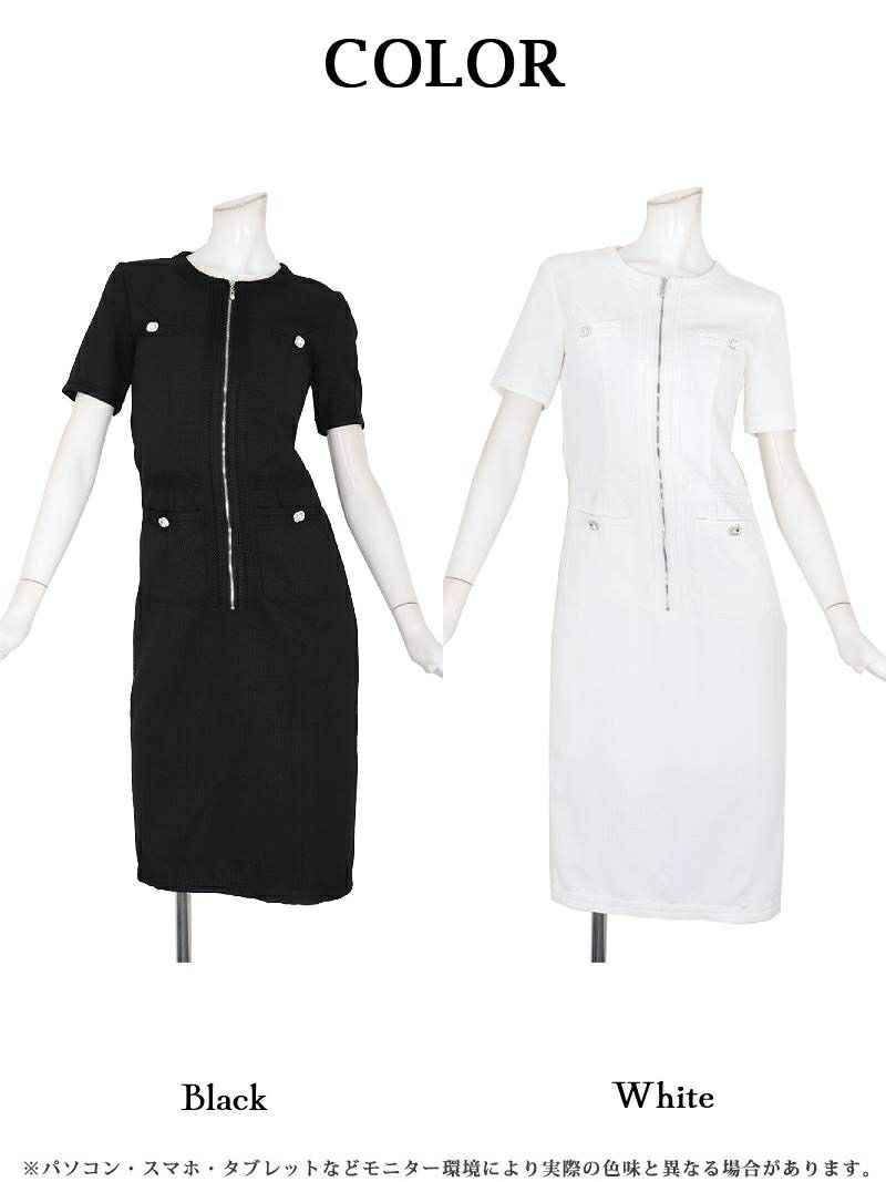 大人の魅力溢れるワンピ ジップタイトライトツイードラウンジ韓国ワンピ KANO 着用 キャバワンピース【DAYS PIECE】(S/M/L/XL(2L))(ホワイト/ブラック) ptpl