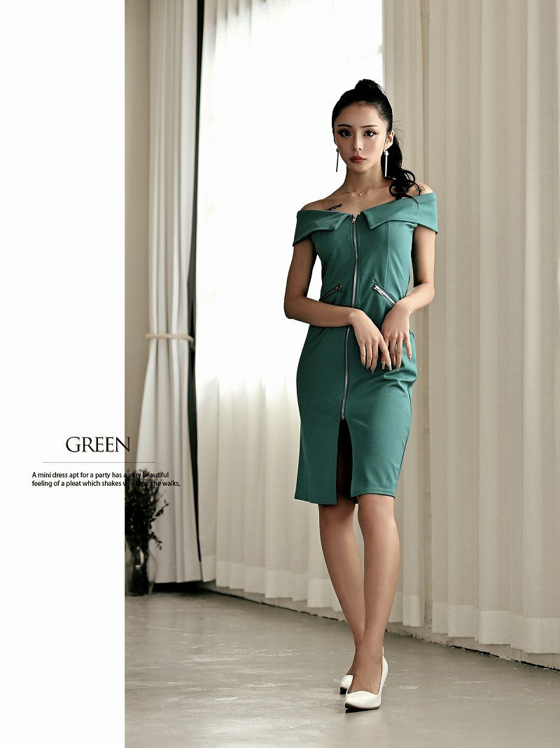 4. 【訳ありアウトレット】大人ミディ丈セクシー韓国風キャバミニドレス【DAYS PIECE】(S/M/L)(グリーン/オレンジ)