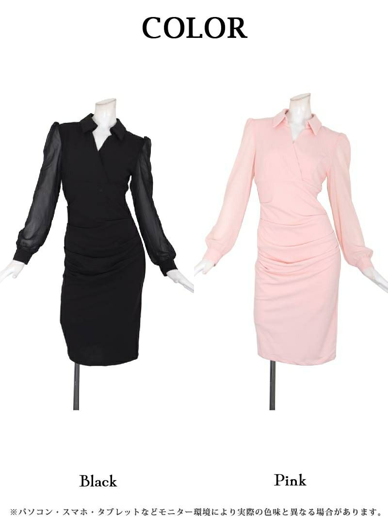 5. 先行予約割¥7980→¥7581!※一部予約販売※襟付きシフォン袖メディ丈韓国風ワンピース KANO 着用 キャバワンピース【DAYS PIECE】(S/M/L/XL(2L))(ピンク/ブラック)