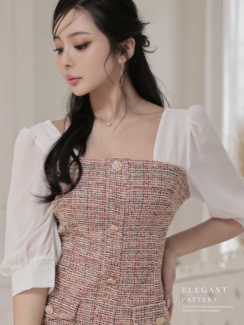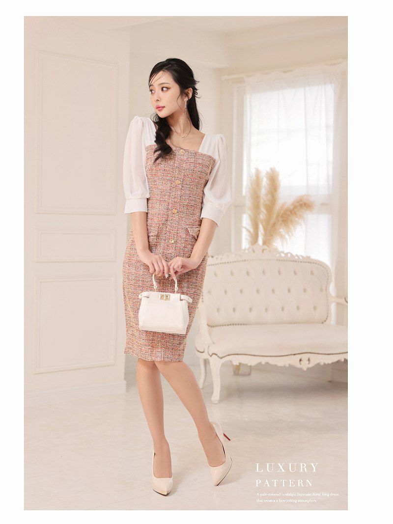 ラメツイードシフォン袖付き韓国ワンピース KANO 着用 大人ワンピース【DAYS PIECE】