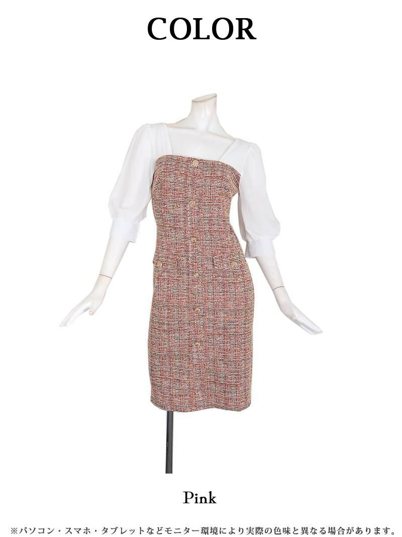 5. 先行予約割¥7980→¥7581!※一部予約販売※ラメツイードシフォン袖付き韓国ワンピース KANO 着用 大人ワンピース【DAYS PIECE】(S/M/L/XL(2L))(ピンク)