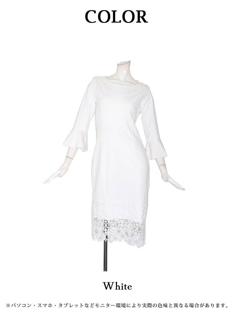 フレア袖が大人可愛い、袖付きの白ワンピースは二の腕が上品に隠せるキャバワンピースになっています。