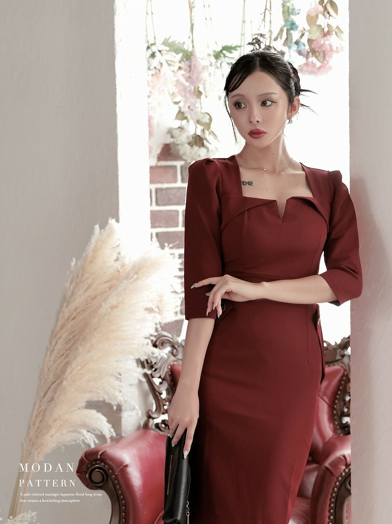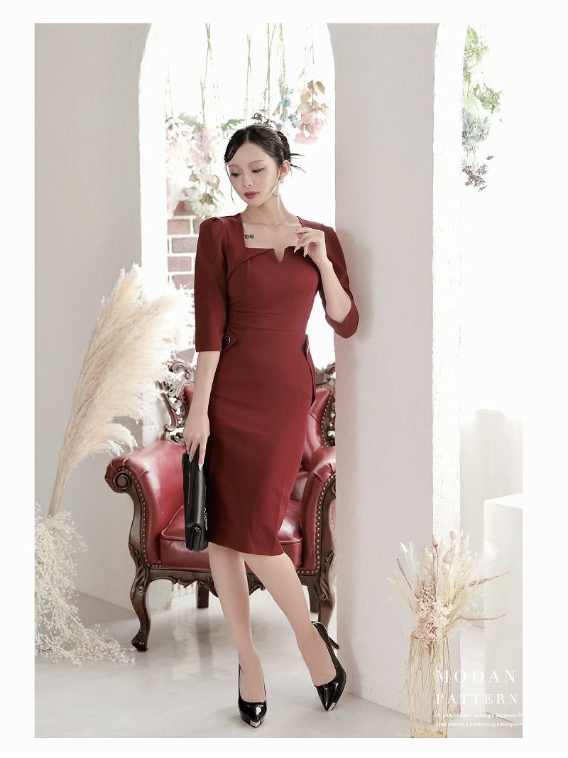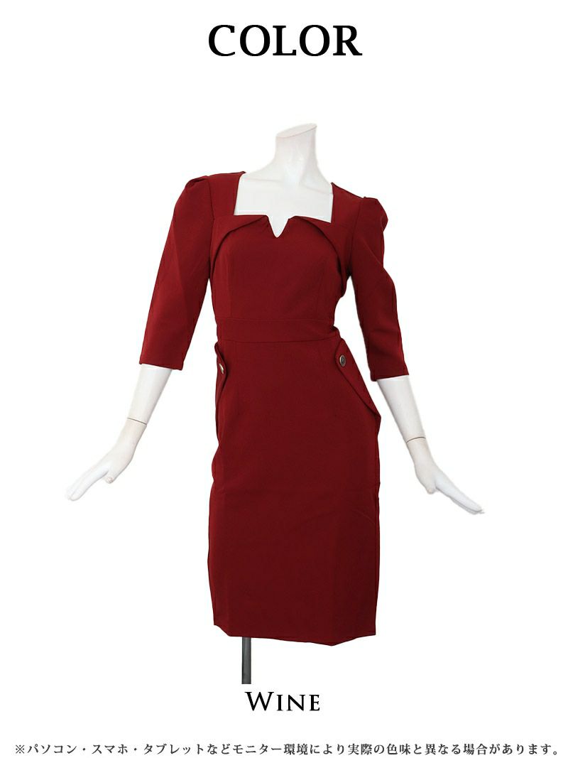 上品シルエットで美脚見え、同伴もスマートに決まるワンピース。 先行予約割¥7980→¥7581!※一部予約販売※スクエアネック×ハイウエスト膝丈韓国ワンピース KANO着用 キャバワンピース【DAYS PIECE】(S/M/L/XL(2L))(ワイン)