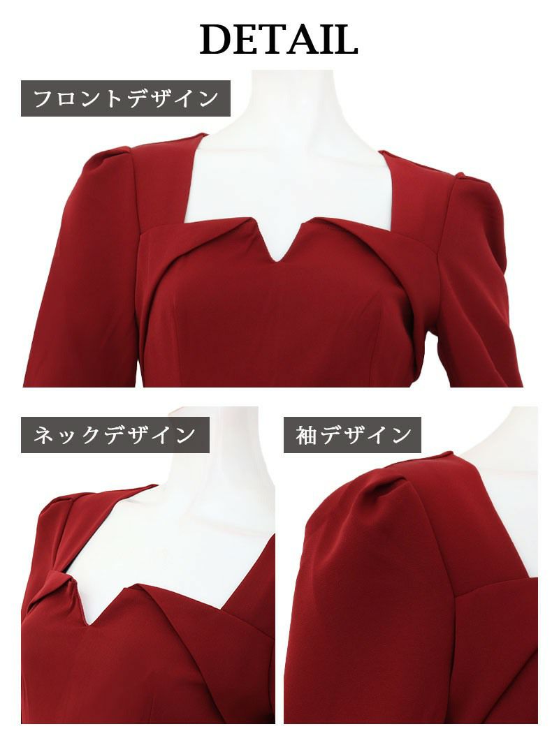3. 先行予約割¥7980→¥7581!※一部予約販売※スクエアネック×ハイウエスト膝丈韓国ワンピース KANO着用 キャバワンピース【DAYS PIECE】(S/M/L/XL(2L))(ワイン)