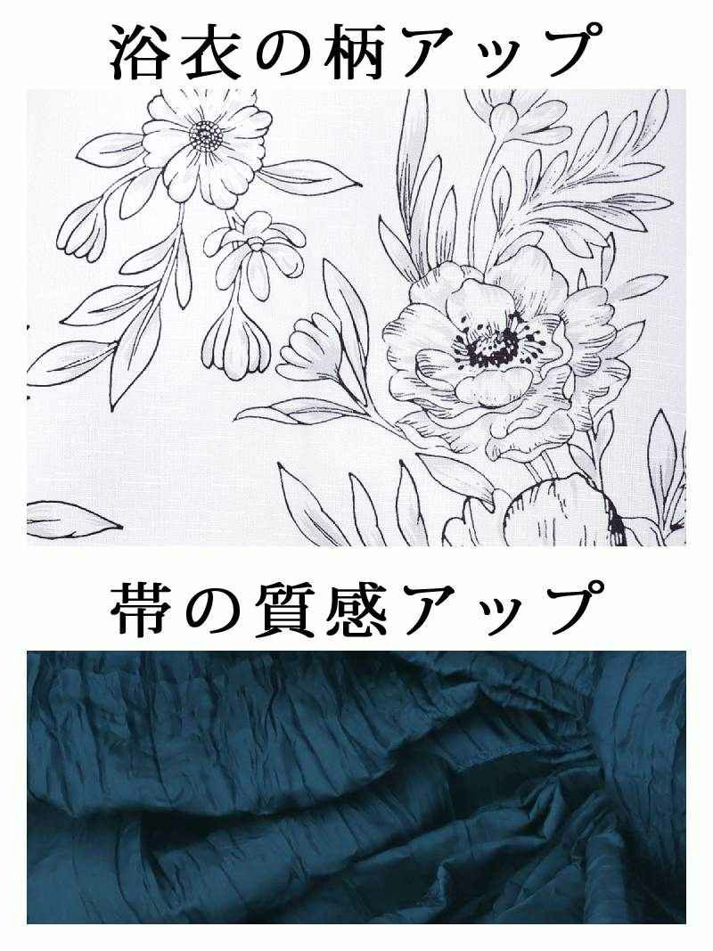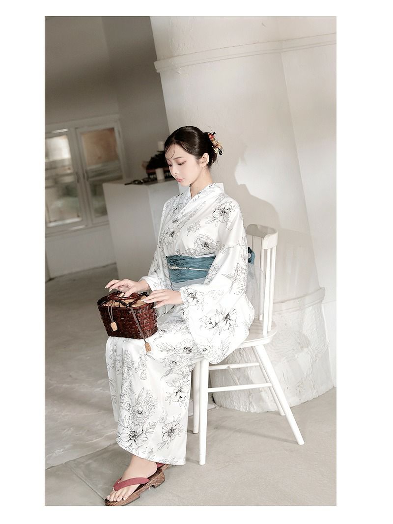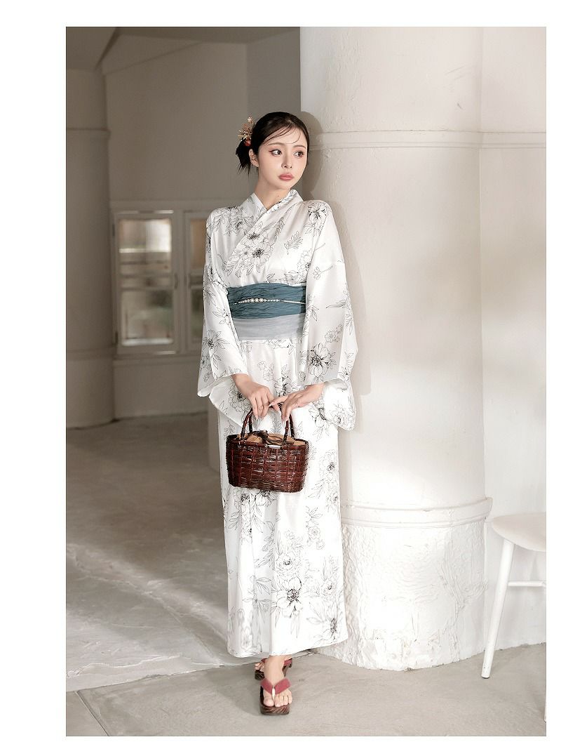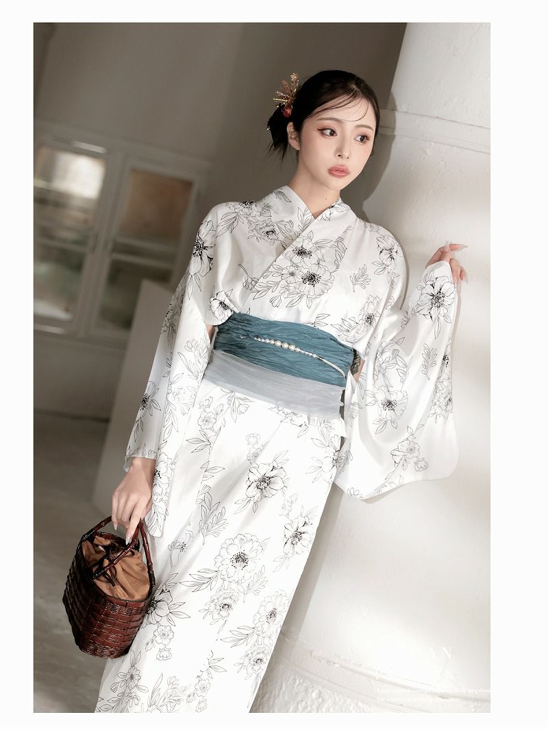 白地に古典柄のフラワーが映えるレディース浴衣です。