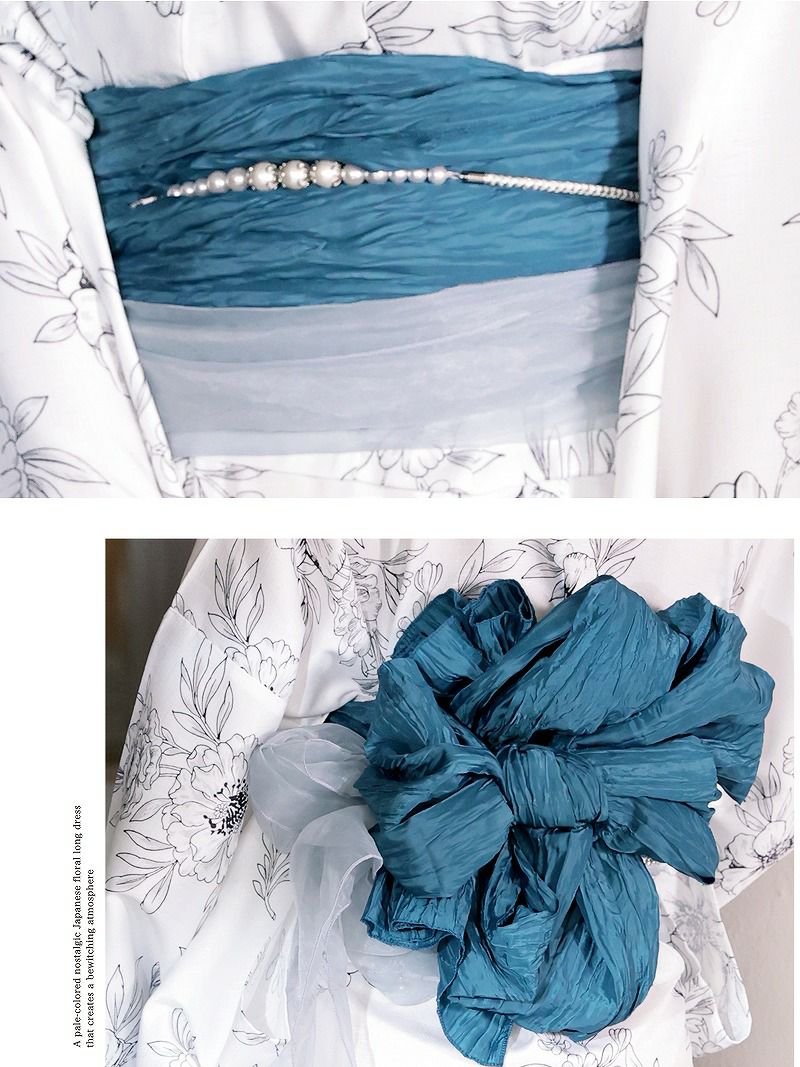 ※予約販売※浴衣 白地に古典フラワーデザインワンピース浴衣 KANO 着用 2WAYレディース浴衣【Ryuyu】