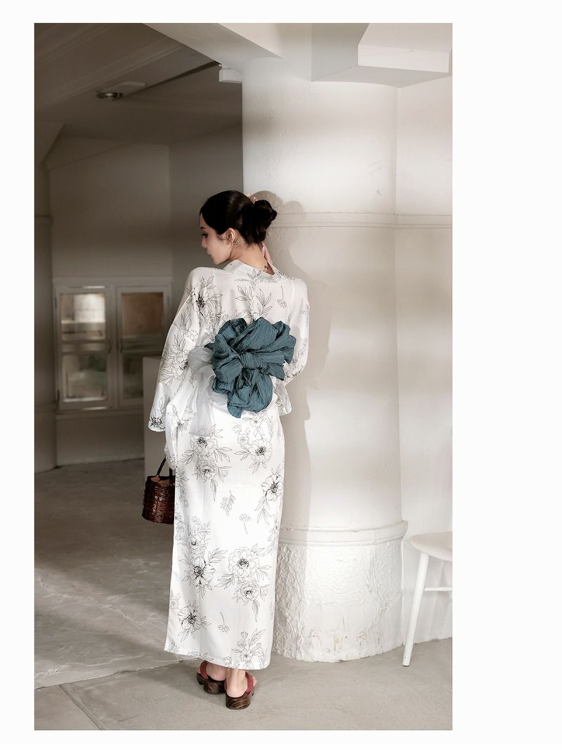 4. 浴衣 白地に古典フラワーデザインワンピース浴衣 KANO 着用 2WAYレディース浴衣【Ryuyu】(フリーサイズ)(ホワイト)