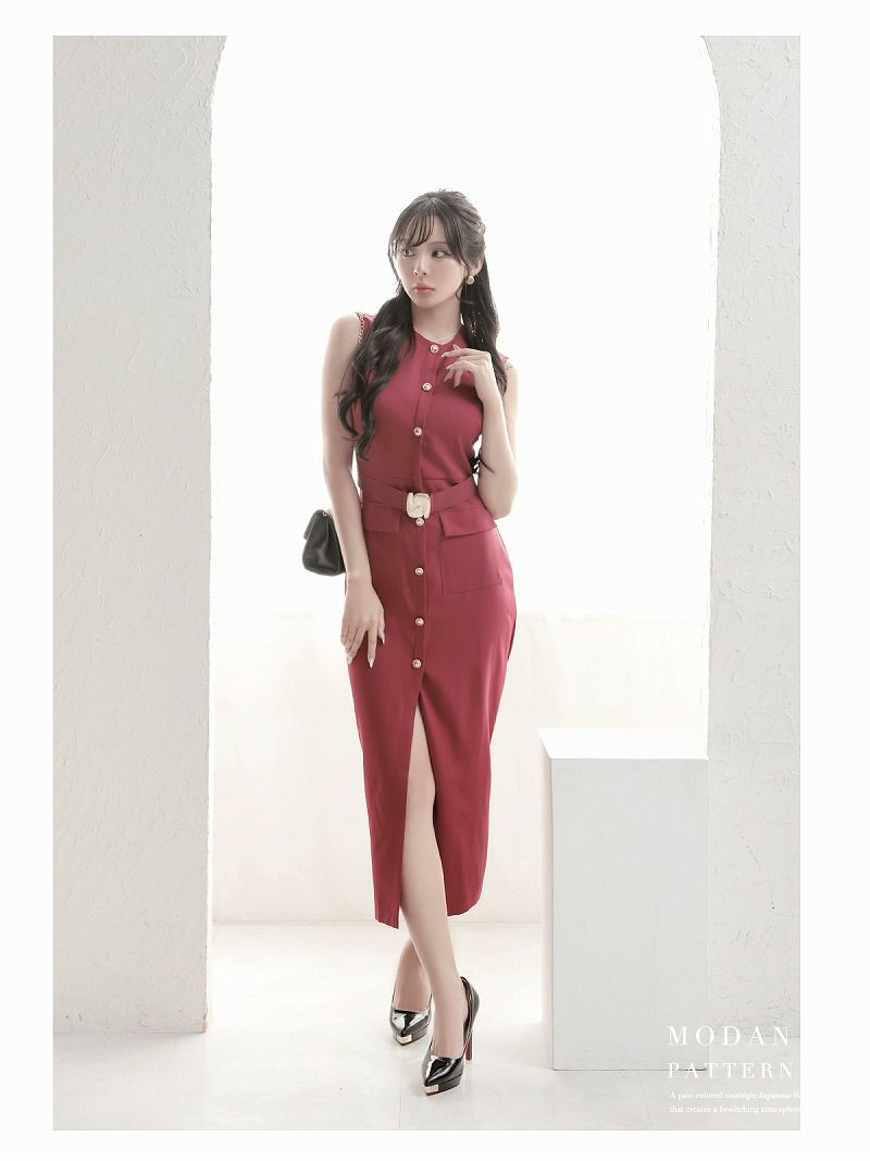 ノースリーブ美シルエミディ丈韓国ワンピース KANO 着用 キャバワンピース【DAYS PIECE】