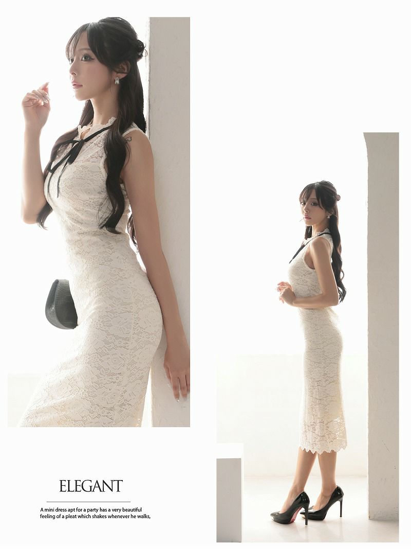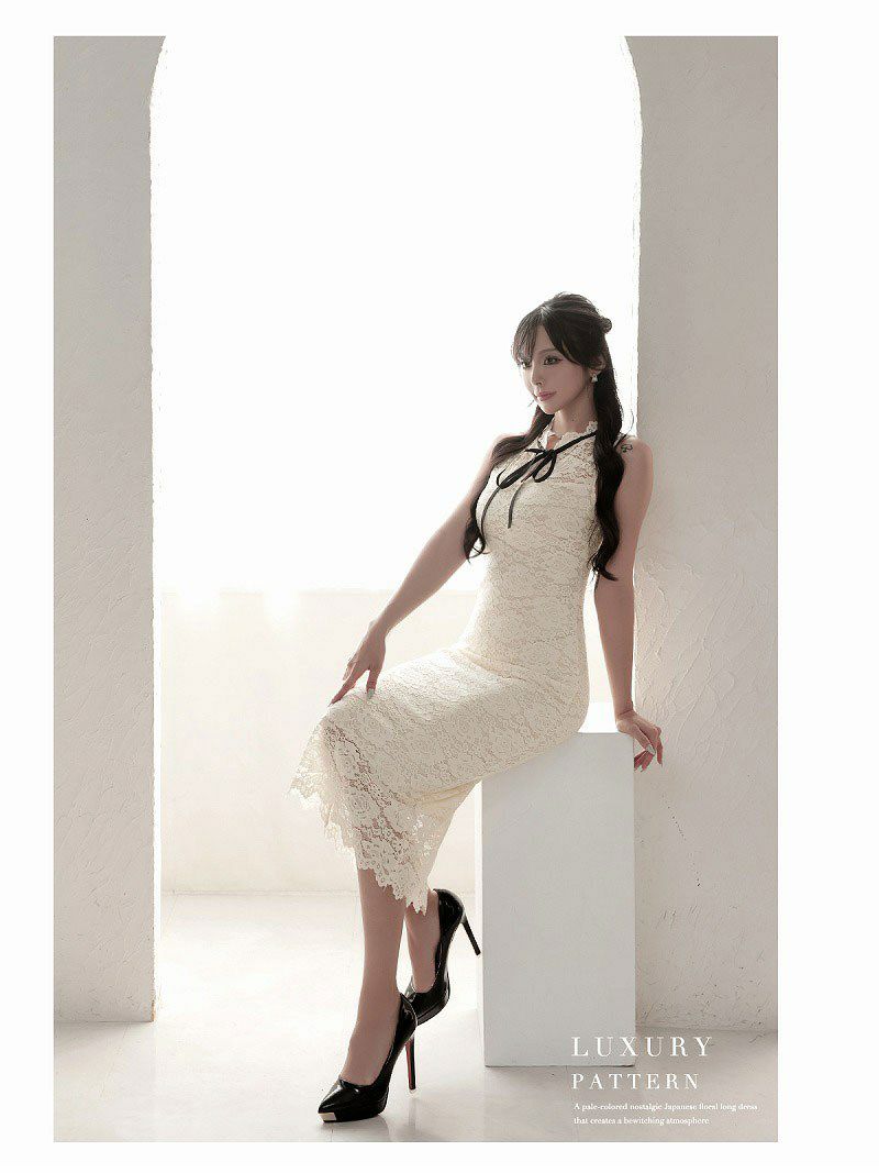 総レースノースリーブ韓国ミディ丈キャバワンピース KANO 着用 韓国ドレス【DAYS PIECE】