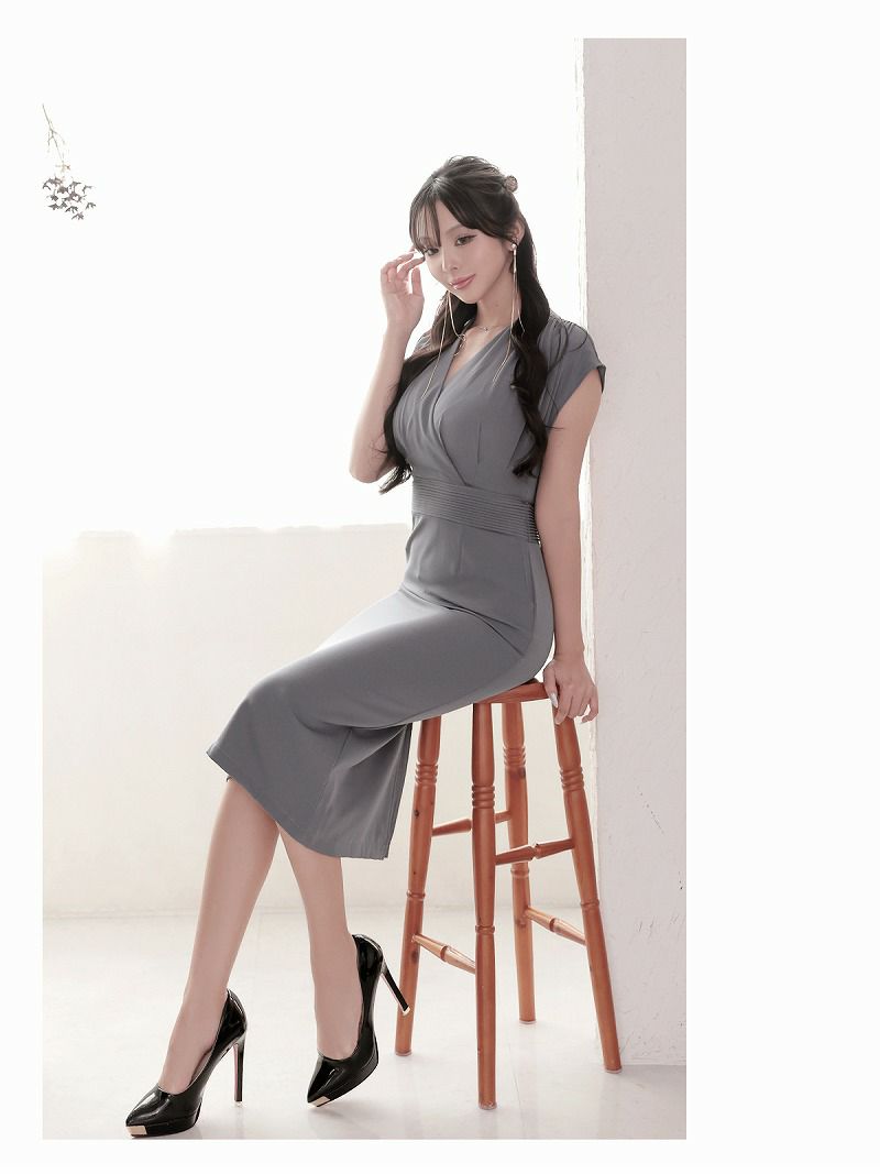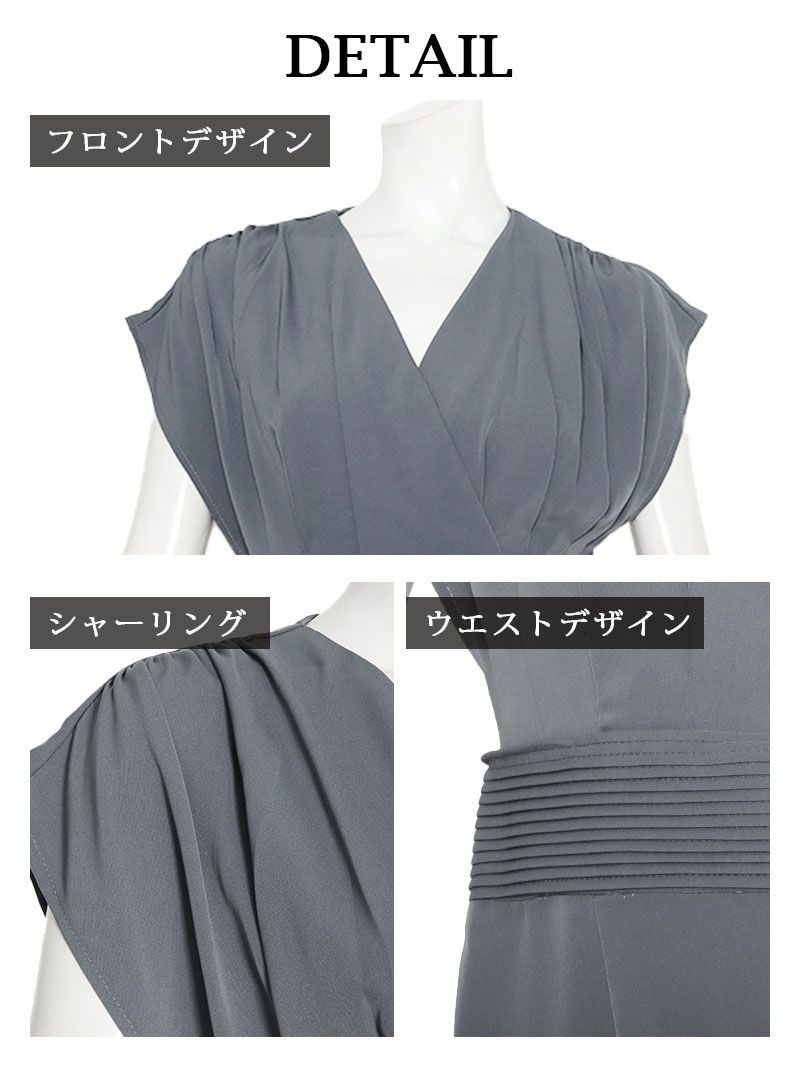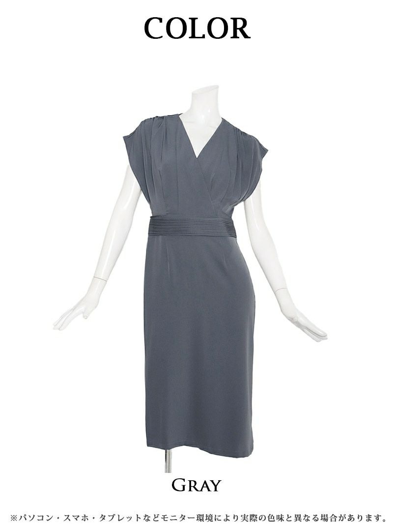 上品グレーでエレガントに。美脚を叶える韓国ドレス 先行予約割¥6980→¥6630!※一部予約販売※カシュクール風ノースリーブ膝丈韓国ワンピース KANO 着用 キャバワンピース【DAYS PIECE】(S/M/L/XL)(グレー)