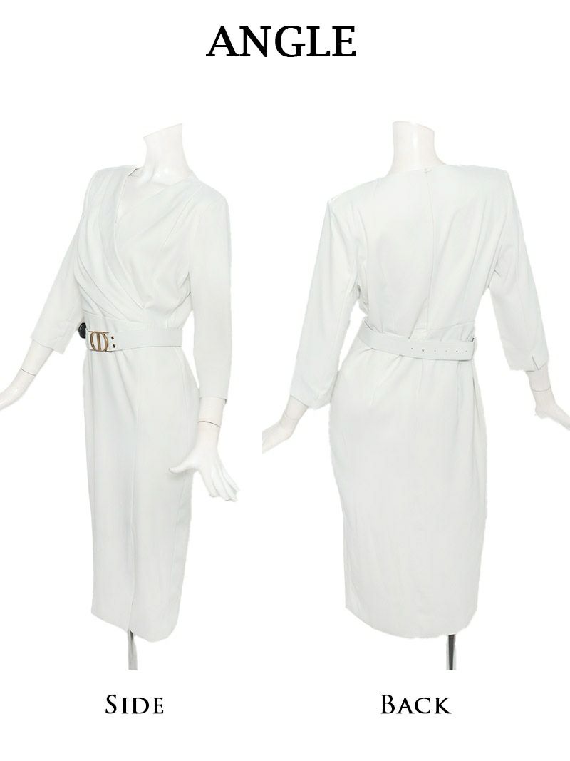 品よく色めく!知的にスタイルアップするタイトワンピース 先行予約割¥7980→¥7581!※予約販売※カシュクールラップデザインベルト付き韓国キャバクラタイトワンピース【DaysPiece】(S/M/L/XL)(ホワイト)