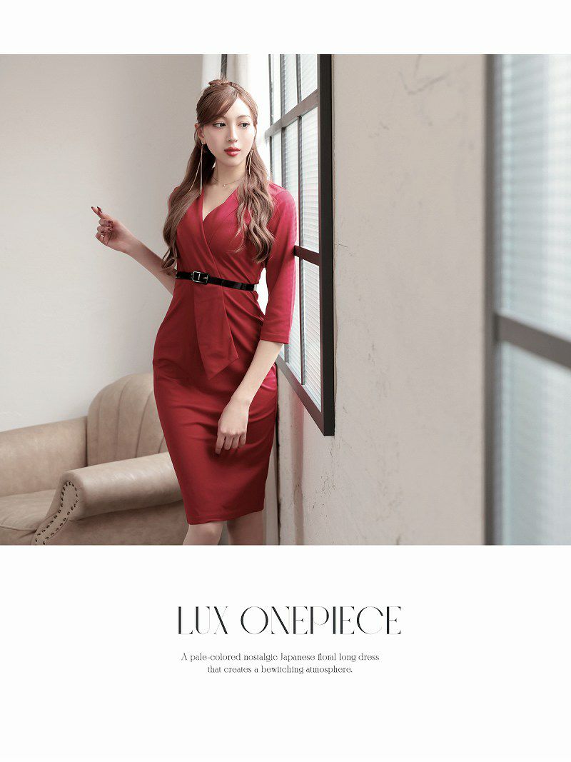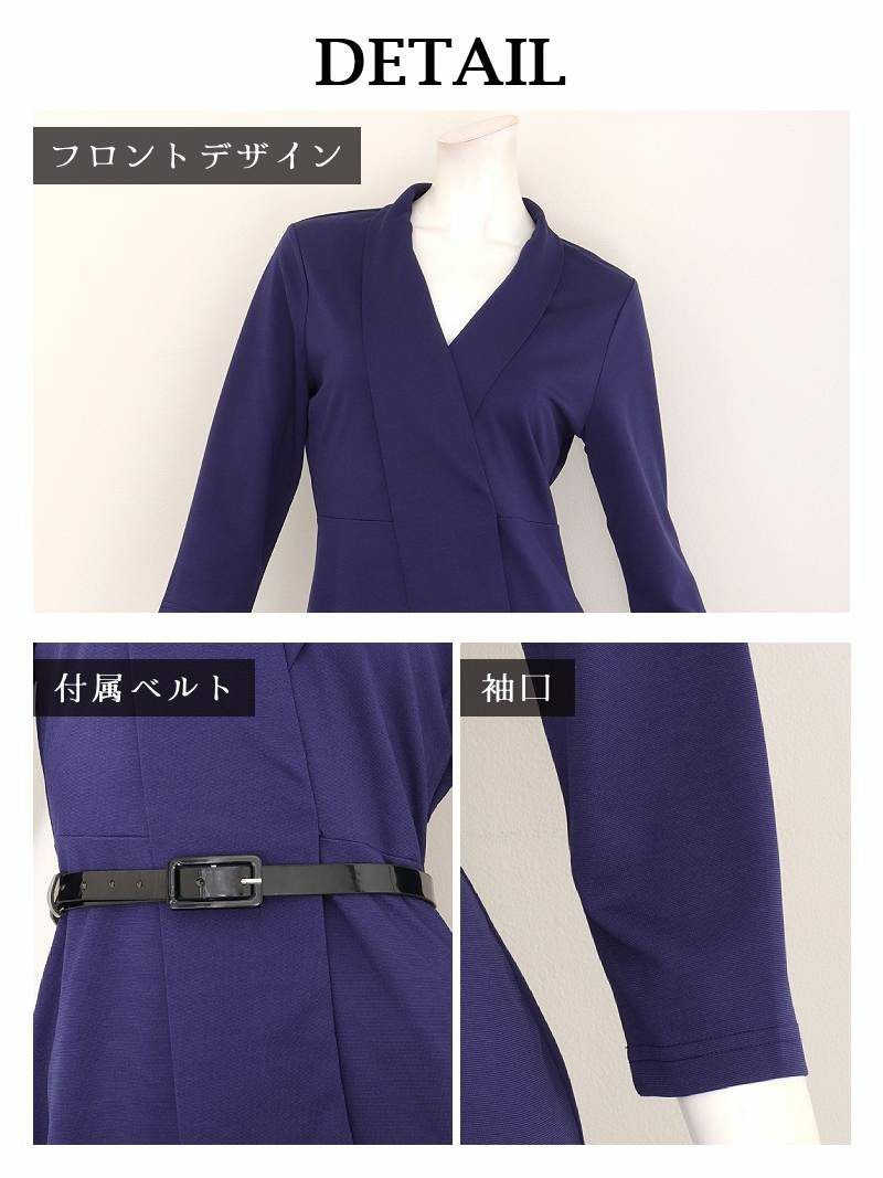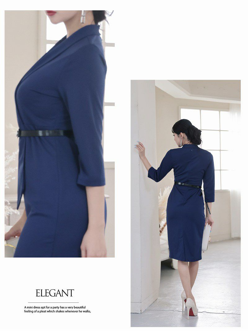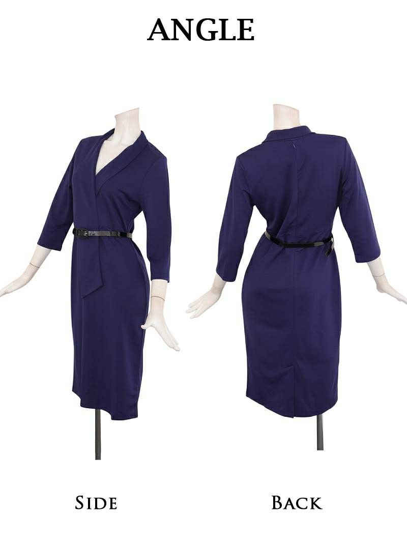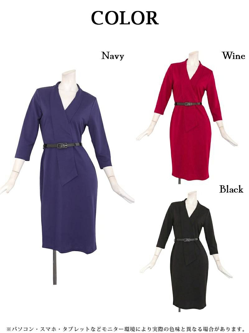 7. カシュクール七分袖ストレッチ韓国風キャバワンピース ベルト付き KANO 着用 キャバワンピース【DaysPiece】(S/M/L/XL(2L)/XXL(3L))(ブラック/ネイビー/ワイン)