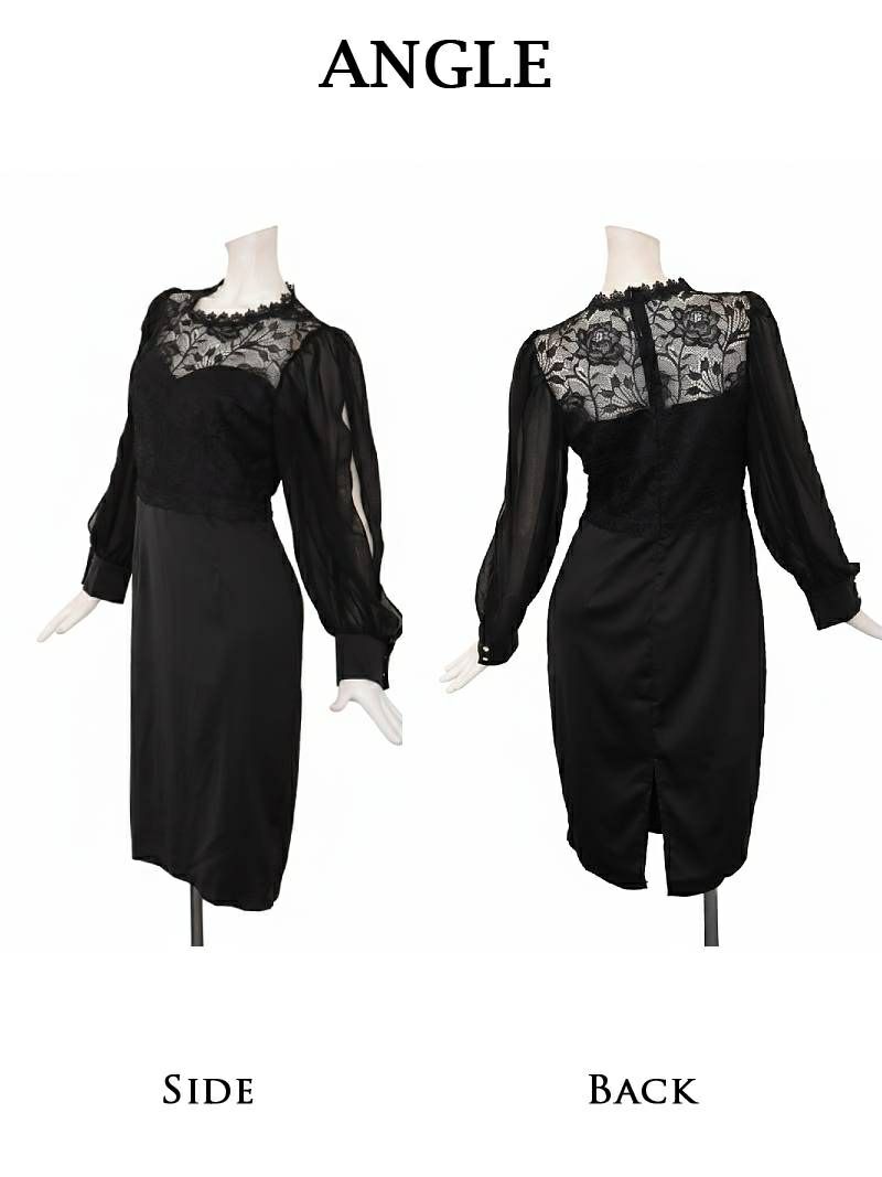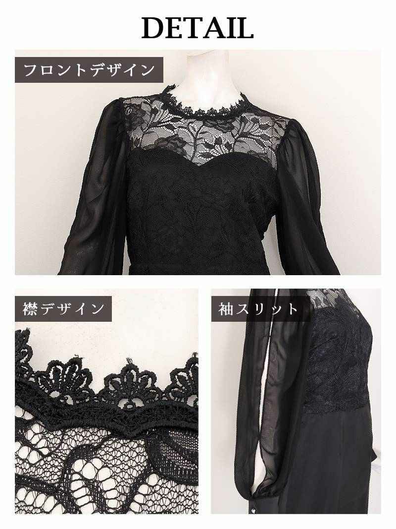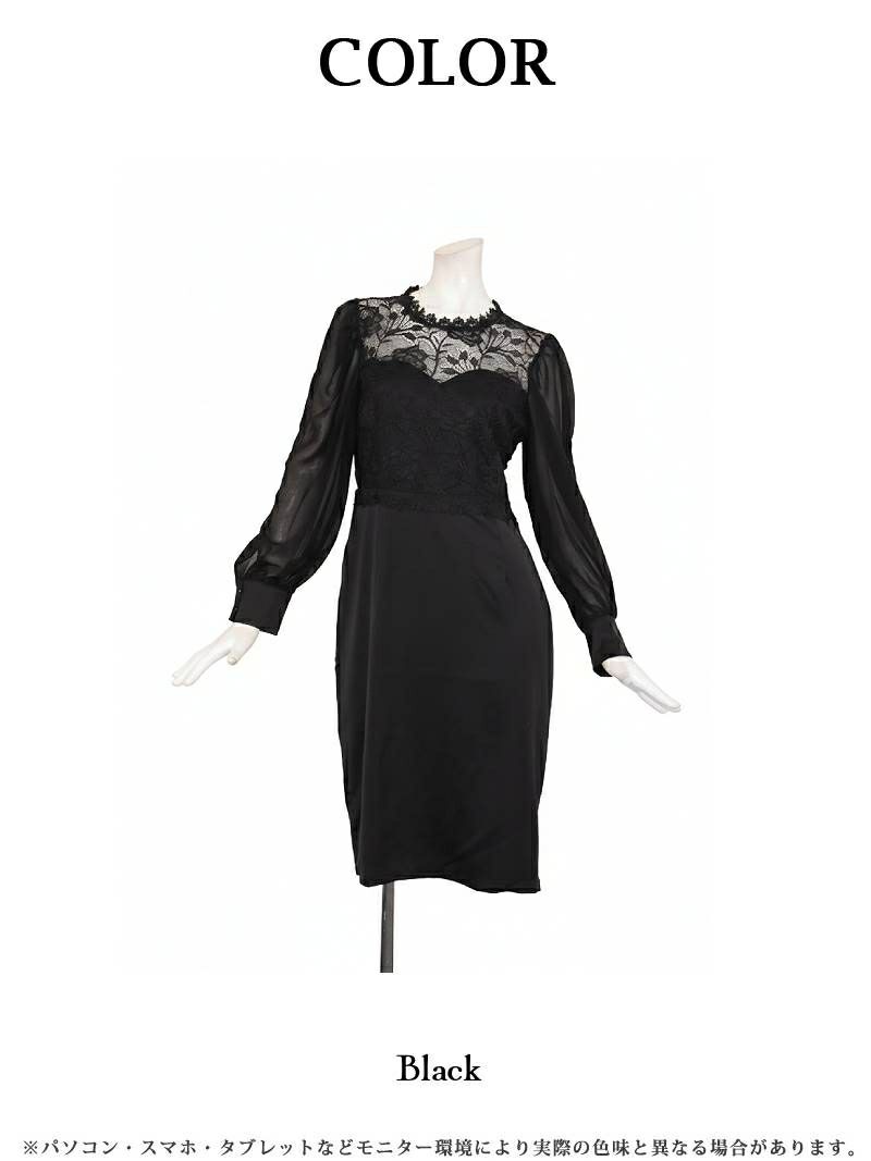 4. 先行予約割¥9880→¥9385!※一部予約販売※ボリューム袖カッティングデザインレース切替タイト韓国風パーティードレス KANO 着用 キャバワンピース【DaysPiece】(S/M/L/XL(2L))(ブラック)