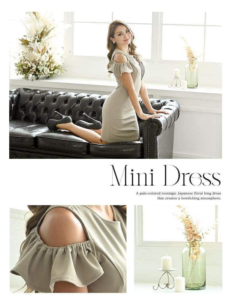 5. アシンメトリーブラックレース袖付きミニ丈キャバドレス【Ryuyu】(S/M/L)(ネイビー/グレージュ)