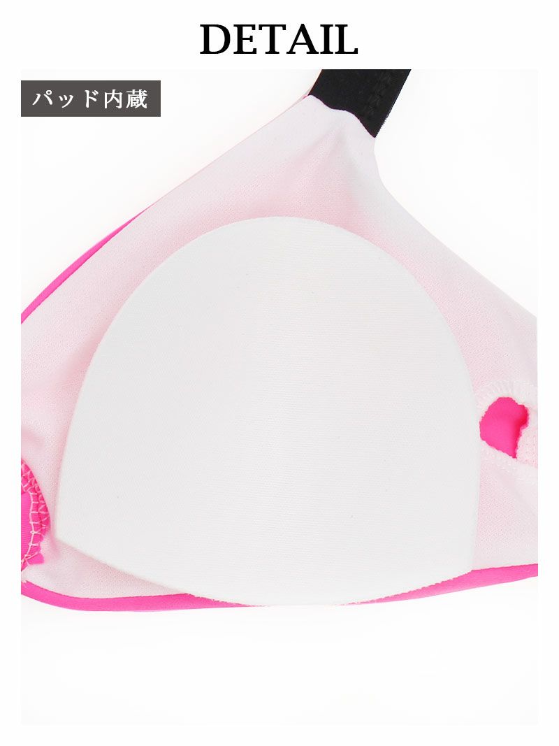 肩紐の長さも調節可能でずり落ちが気にならないキャバビキニは、黒ラインが施されていることで細見え効果もばっちりできちゃいます。
