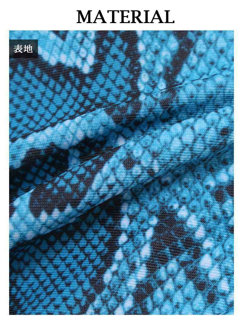 4. パイソン柄ネオンカラーモノキニワンピース水着 KANO 着用 水着【Ryuyu】(S/M)(ブルー/グリーン)
