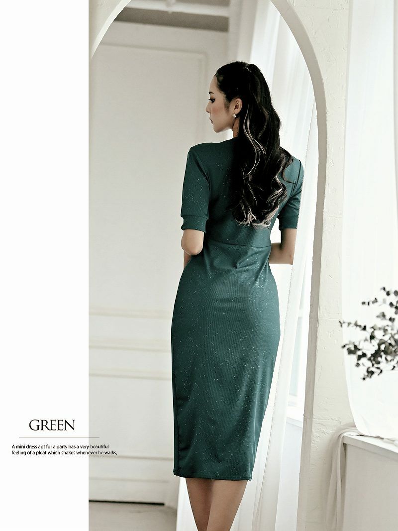 4. 【訳ありアウトレット】きらきらラメ入りミディ丈タイト韓国キャバワンピース【DAYS PIECE】(S/M/L)(ラベンダー/グリーン/ブラック)