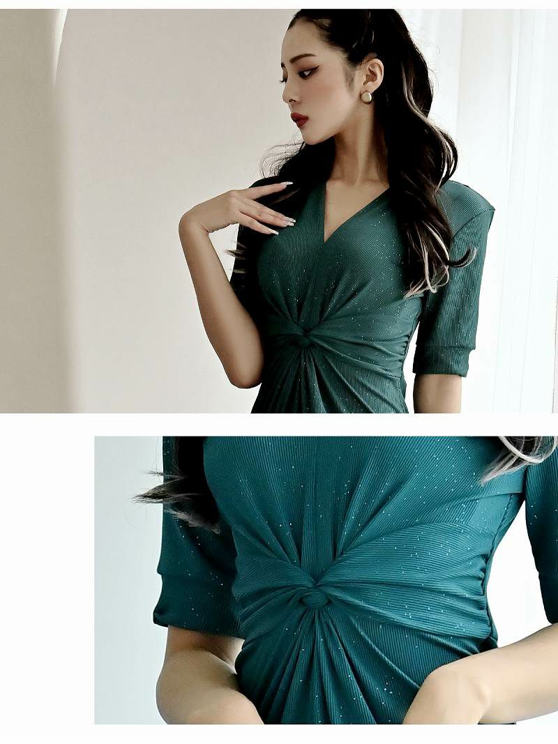 7. 【訳ありアウトレット】きらきらラメ入りミディ丈タイト韓国キャバワンピース【DAYS PIECE】(S/M/L)(ラベンダー/グリーン/ブラック)