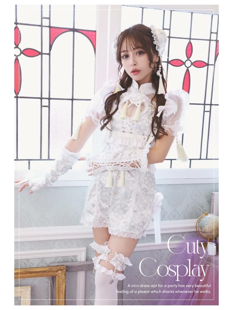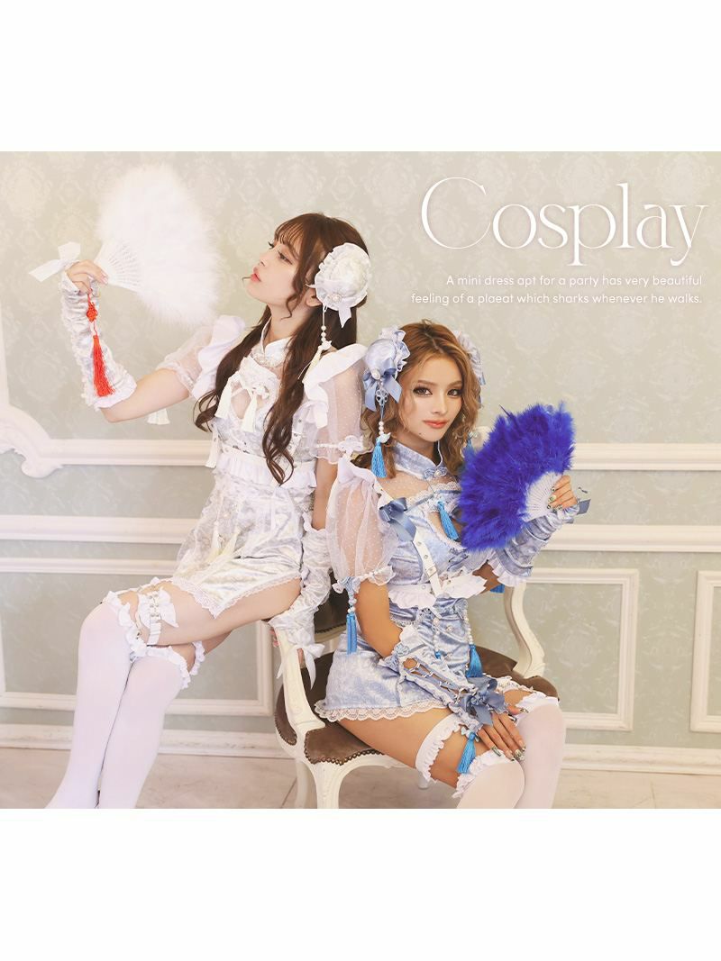 夢かわいい雰囲気できゅんとさせる♪ コスプレ ハートデザインファンシーチャイナコスプレ れいぽよ まぁみ 着用レディースコスプレ9点セット【Ryuyu】(フリーサイズ)(ホワイト/ブルー)
