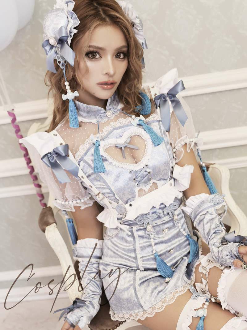 6. コスプレ ハートデザインファンシーチャイナコスプレ れいぽよ まぁみ 着用レディースコスプレ9点セット【Ryuyu】(フリーサイズ)(ホワイト/ブルー)