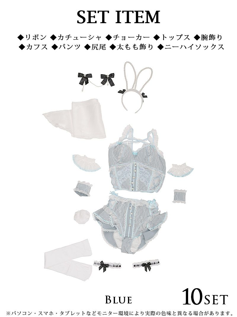 3. コスプレ ドール風レースギャルコスプレ まぁみ れいぽよ 着用 レディースコスプレ7点セット(フリーサイズ)(ベージュ/ブルー)