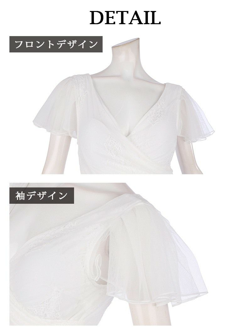 5. スーパーSALE¥7390→¥6333! アイラッシュレース袖付きミニドレス まぁみ れいぽよ着用 カシュクールVネックキャバドレス【Ryuyu】(S/M/L/XL)(ブラック/ホワイト)