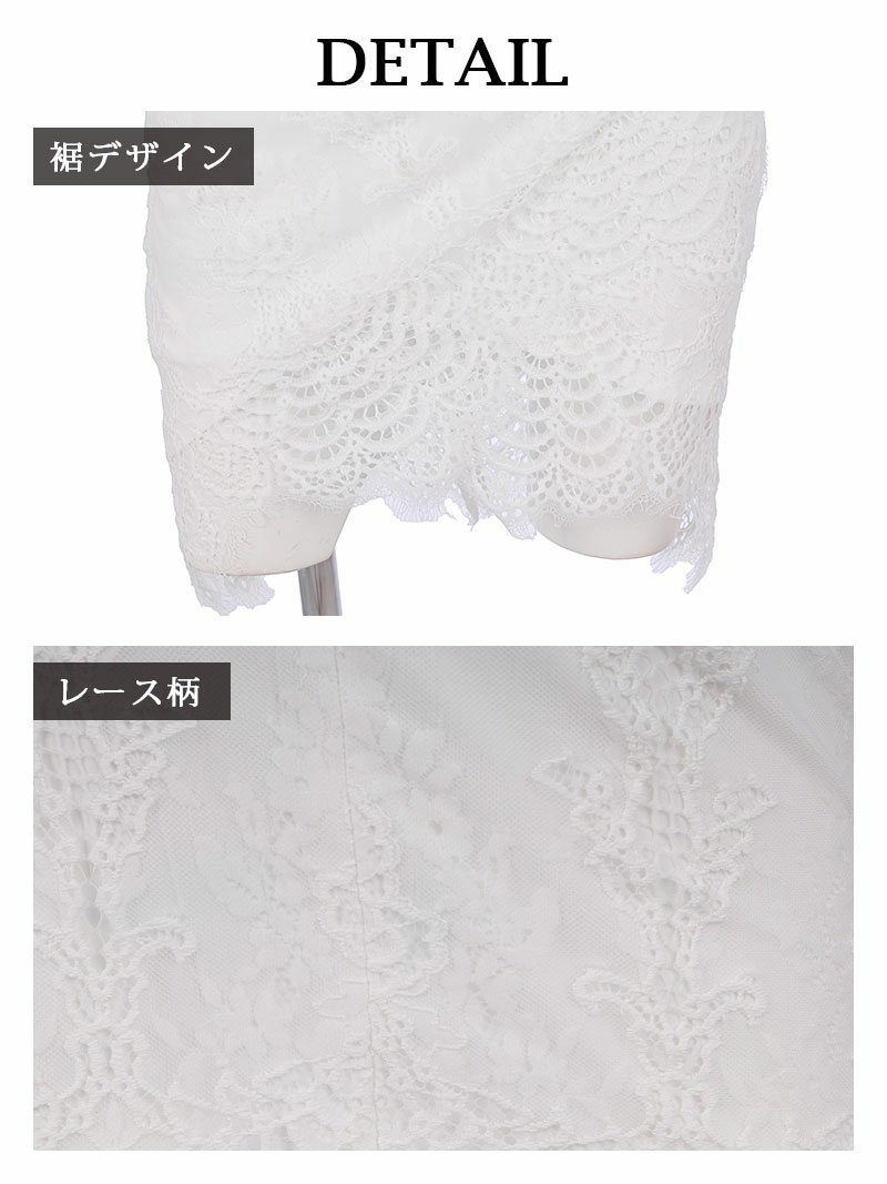アイラッシュレースが上品さを引き立てるカシュクールデザインのミニドレス。