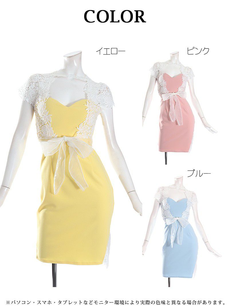 4. 【訳ありアウトレット】パステル色の袖付タイトミニキャバドレス【Ryuyu】(S/M/L)(ピンク/イエロー/ブルー)