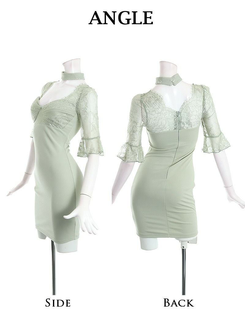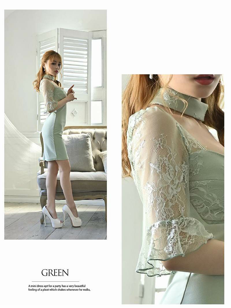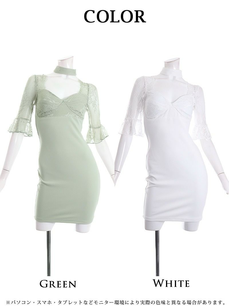 5. 【訳ありアウトレット】袖付レース大人タイトキャバミニドレス【Ryuyu】(S/M/L)(グリーン/ホワイト)