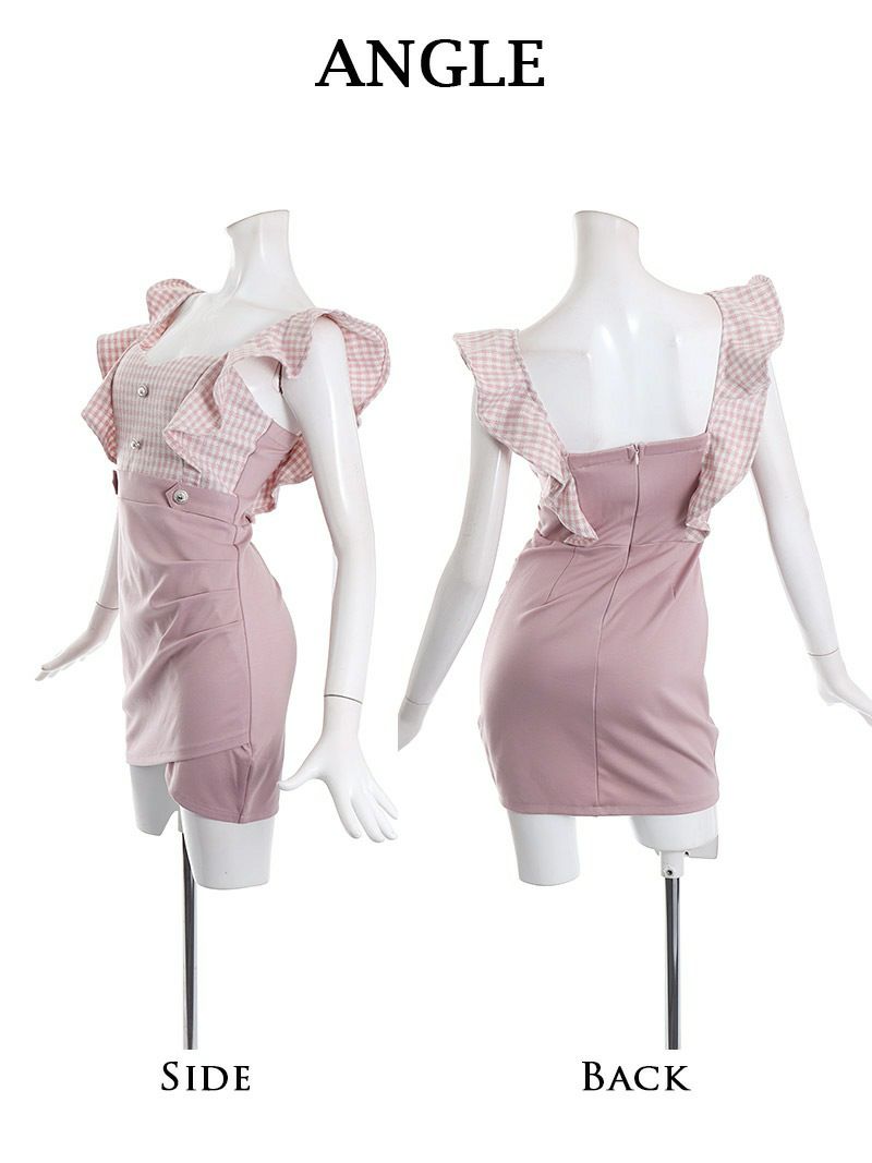 【訳ありアウトレット】可愛いチェック柄のフリル袖キャバミニドレス【Ryuyu】
