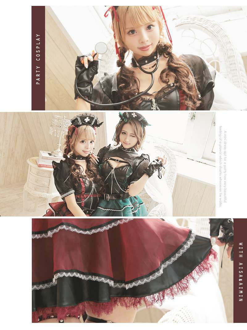地雷系デビルナースで悩殺! コスプレ 悪魔ナースゴスロリギャルコスプレ あいさ あいみん 着用 レディースコスプレ10点セット【Ryuyu】(フリーサイズ)(レッド/グリーン)