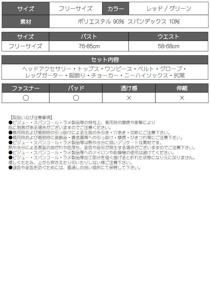 セット内容:ヘッドアクセサリー・トップス・ワンピース・ベルト・グローブ・レッグガーター・脚飾り・チョーカー・ニーハイソックス・尻尾