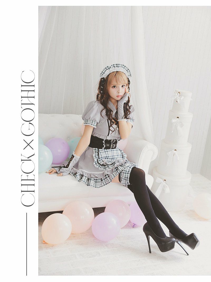 コスプレ ゴシックチェック柄メイドギャルコスプレ あいさ あいみん 着用 レディースコスプレ7点セット【Ryuyu】