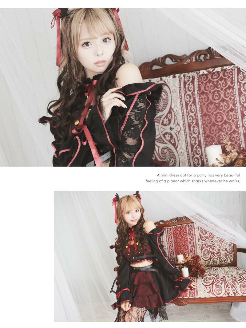 コスプレ 袖付きロリータ風吸血鬼ギャルコスプレ あいさ あいみん 着用 レディースコスプレ7点セット【Ryuyu】
