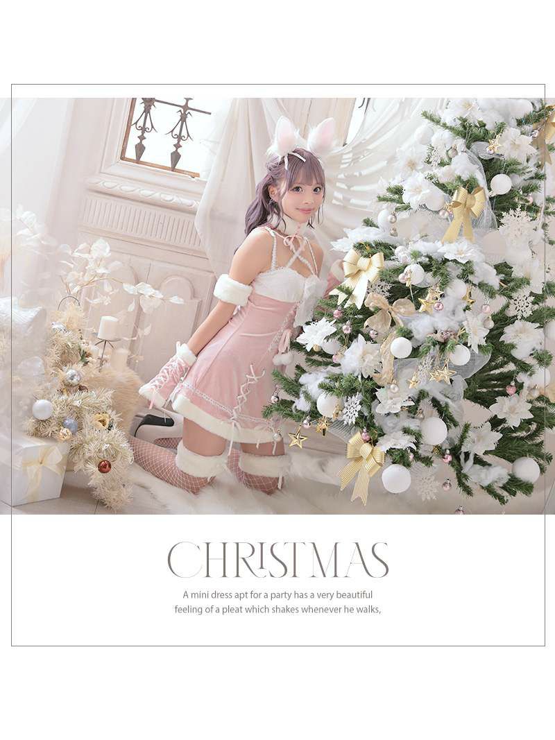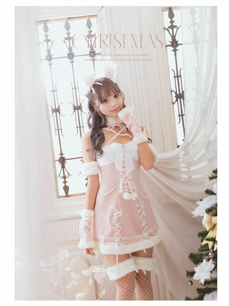 6. サンタコスプレ バニーガールエロかわサンタコスプレ9点セット あいさ あいみん 着用 サンタコスプレ【Ryuyu】(フリーサイズ)(レッド/ピンク/ホワイト)