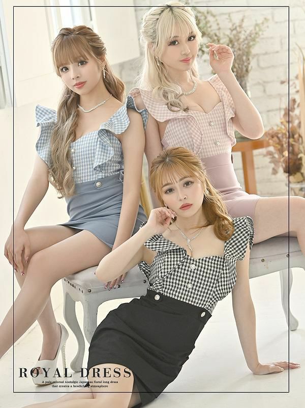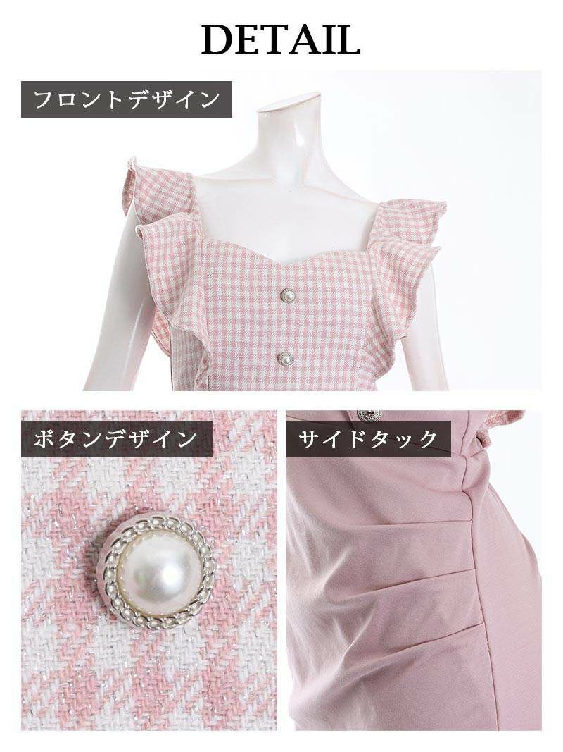チェック柄とフリル袖が可愛いキャバドレス。